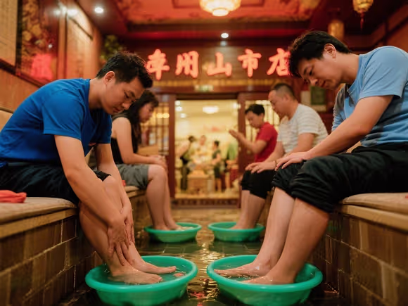 - 特色:大堂装修富丽堂皇,具有新中式风格,店员服装也颇有古风韵味。房间类似私人影院,座椅舒适,可遥控选电影,影单较新。提供艾草、牛奶、姜 3 款泡脚包,技师会帮忙做肩颈放松,力度可根据客人情况调整,还会提供改善建议。此外,店里还有茶道、汗蒸等体验,餐厅晚上有自助餐,适合商务宴请或和朋友聚会。
