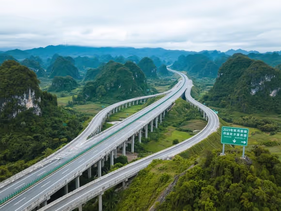 合那高速靖西段串联起鹅泉、旧州古镇等景点。鹅泉作为中越德天瀑布的源头,以 “鹅泉跃鲤三层浪” 奇观闻名;旧州古镇则以壮族绣球制作技艺和明代古街风貌吸引游客。